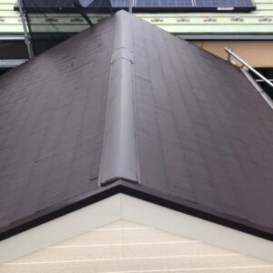 屋根素材はコロニアルです。老朽化で色落ちが見られ、屋根材の一部が欠けたりしています。普段見ることが出来ないところですので、しっかり確認して補修が必要な部分は補修し、お客様ご希望のブラウンカラーにて仕上げました。 Befo