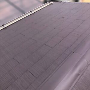 屋根素材はコロニアルです。老朽化で全体的に色落ちや苔が見られており、棟の部分はサビがかなり目立っています。外壁もコーキング等の劣化が見られました。コーキングの劣化は防水効果の低下につながり、雨漏りなどの心配が出てきます。